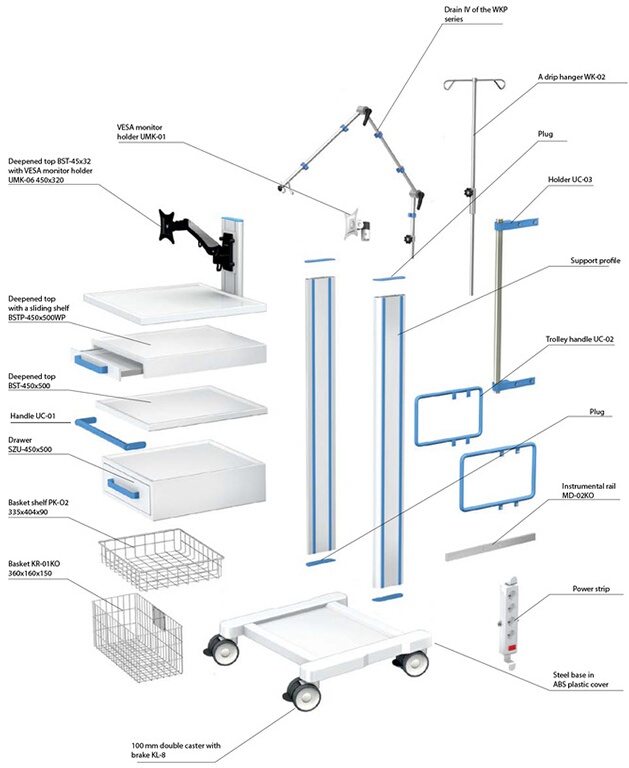 The XCSAPAR series allows you to build functional medical carts through different types of modules and accessories.